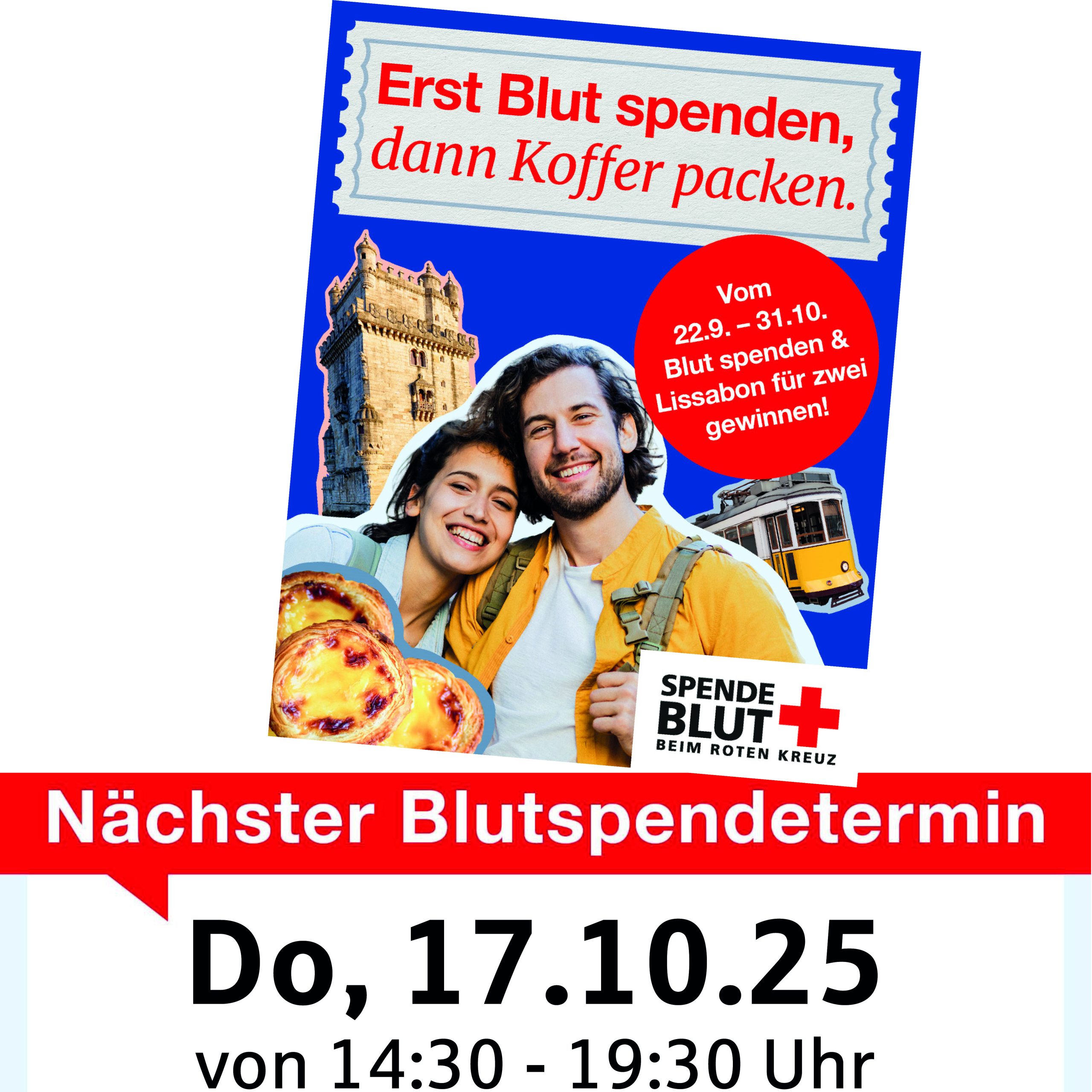 Einfach Blutspendetermin am 17. Oktober 2025 buchen, Blut spenden und danach online an der Verlosung teilnehmen.