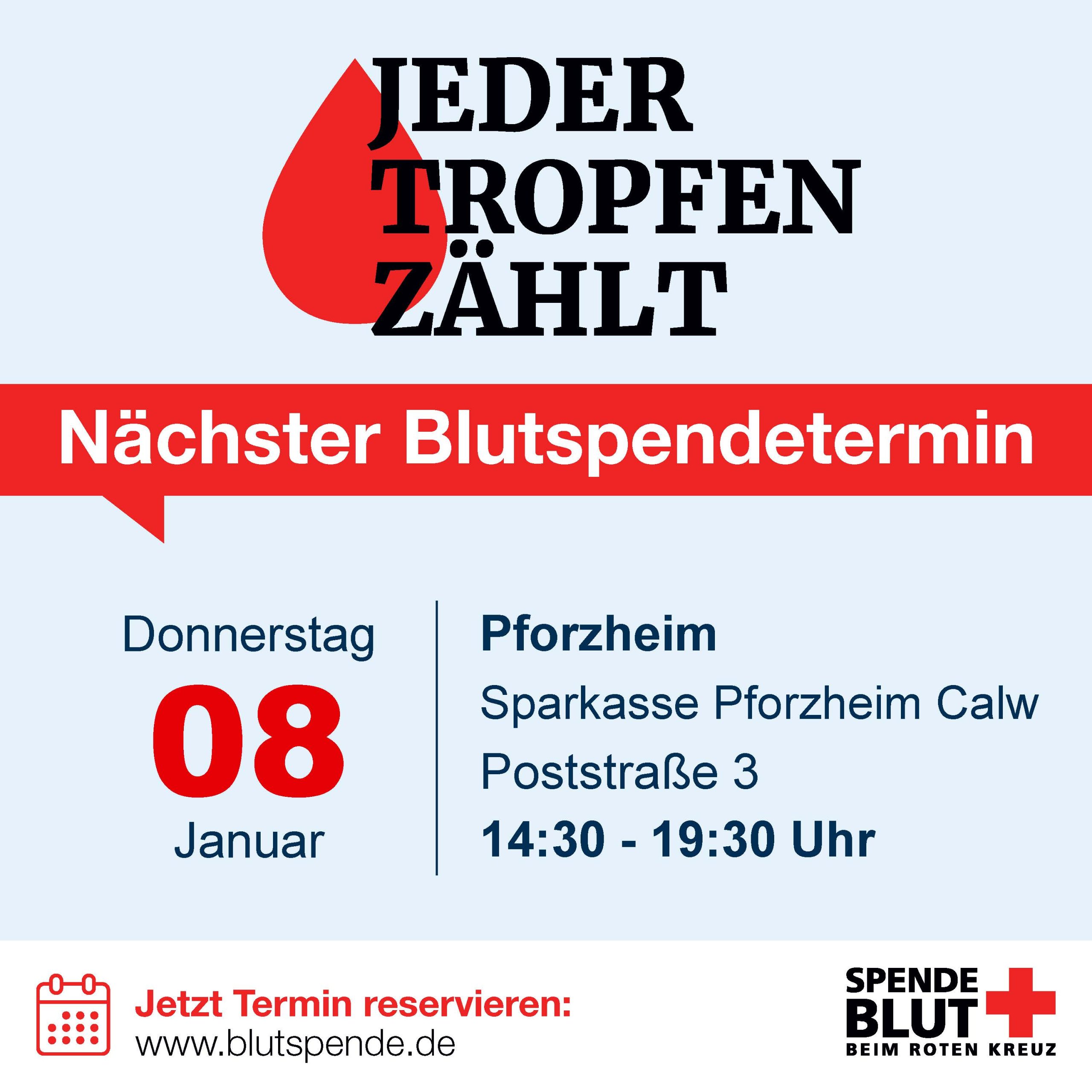 Die nächste Blutspende-Aktion ist am Donnerstag, 08. Januar 2026 von 14:30 Uhr bis 19:30 Uhr im Forum des TurmQuartiers , Poststraße 3 in Pforzheim.