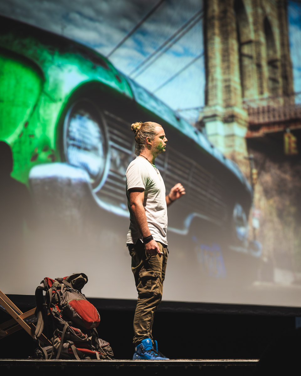 Seine Liveshow „Die geilste Lücke im Lebenslauf“ gehört heute zu den erfolgreichsten Bühnenformaten im deutschsprachigen Raum – mit über 100.000 Live-Besucher:innen. Die Show ist keine klassische Reisereportage mit Sonnenuntergängen und Blümchen, sondern eine interaktive, humorvolle Eskalation zwischen Tiefgang, Wortwitz und inspirierender Lebenslust.